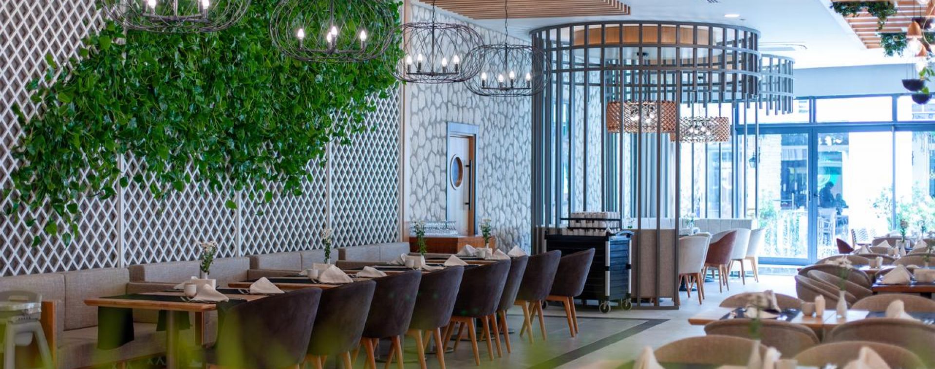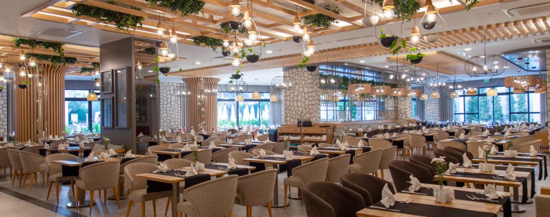 Основен ресторант, 2 а-ла-карт ресторанта (средиземноморски, китайски – 1 безплатно посещение на 1 от ресторантите при минимум 7 нощувки, с предварителна резервация), 1 снек ресторант на плажа, сладкарница, 3 бара, открит и закрит басейн, аквапарк с 4 водни пързалки, СПА център.