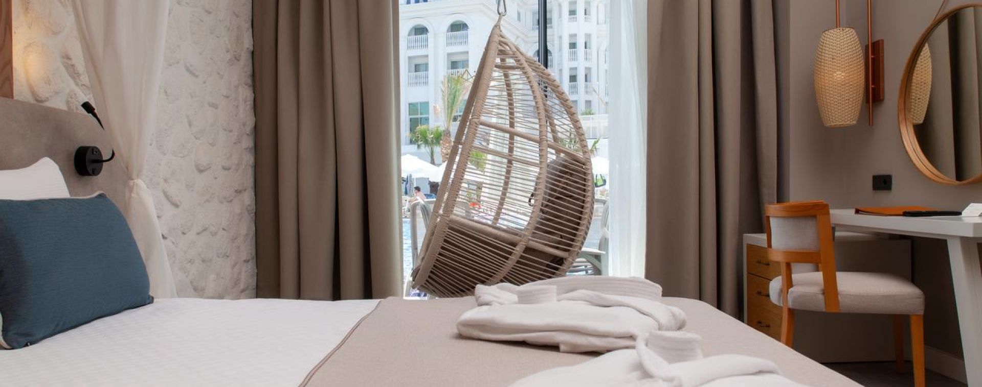 Хотелът разполага с общо 232 стаи, разположени в 6-етажна основна сграда, от които 118 Standard (28 м2), 55 Standard Pool view (с изглед басейн - 28 м2), 19 Swim Up (с директен достъп до общ басейн – 28 м2), 40 Family Room (2 спални, 1 баня - 37 м2).