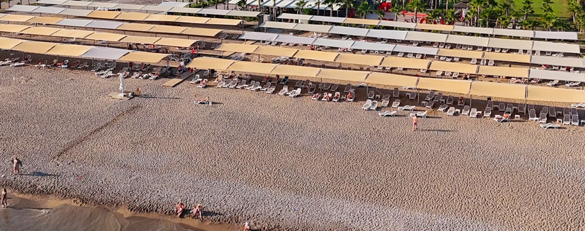 Собствен, пясъчно - чакълест. Чадъри, шезлонги и плажни кърпи на плажа и при басейна – безплатно.