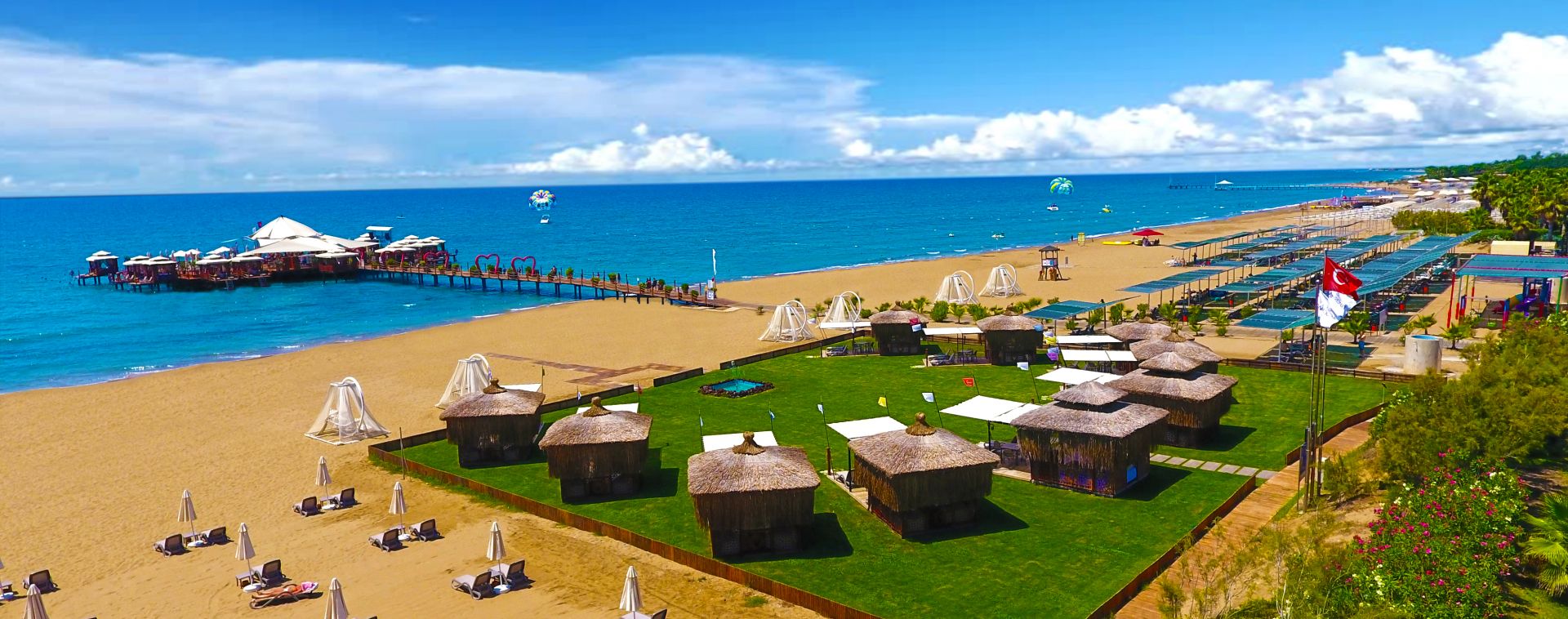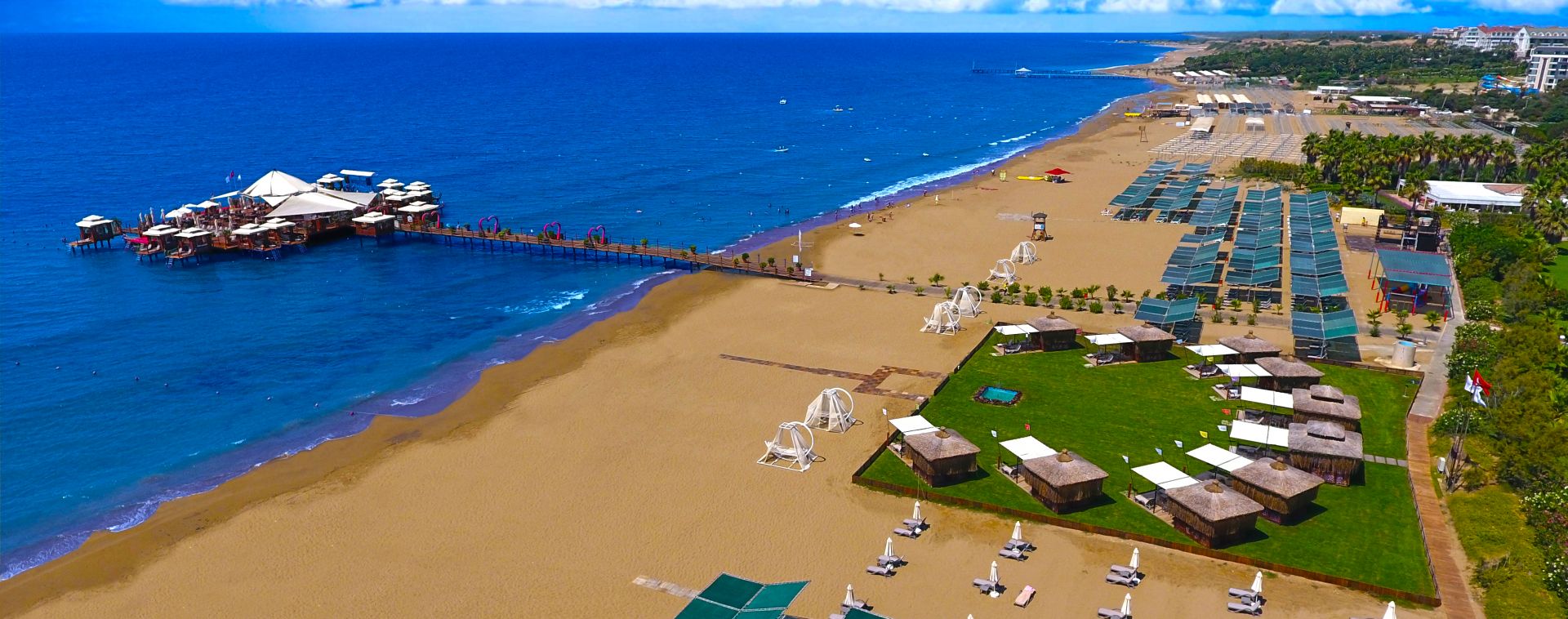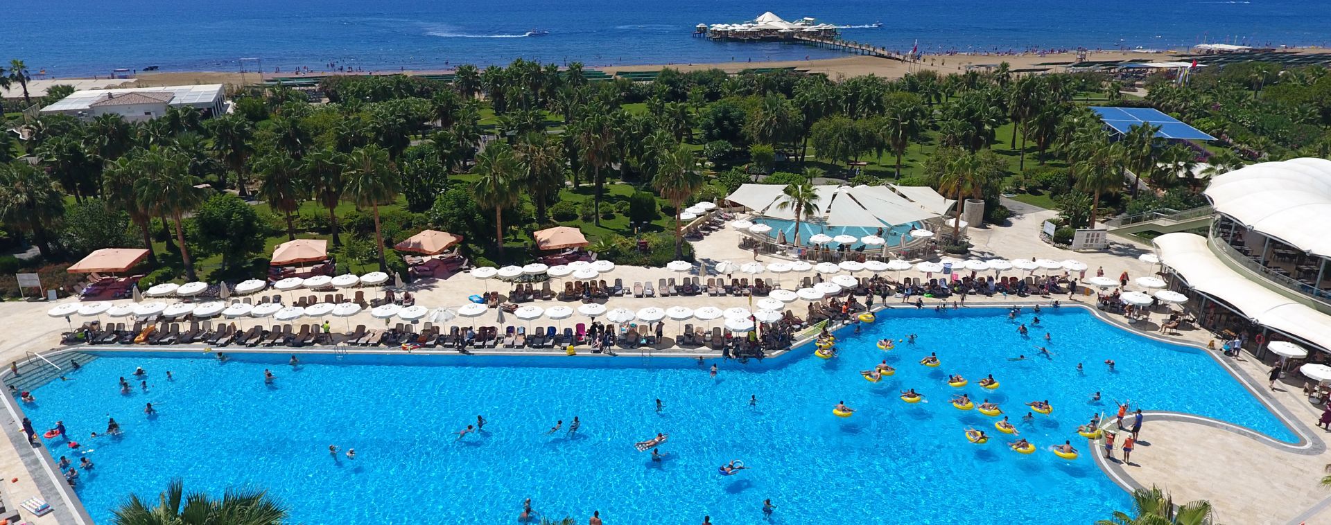 Основен ресторант, 9 а-ла-карт ресторанта (италиански, турски, стек, далекоизточен, рибен, кебап, средиземноморски, мексикански, гръцки - срещу заплащане, с предварителна резервация), сладкарница, снек ресторант, кафетерия, 6 бара, диско бар, открит и закрит (oтопляем) басейн, аквапарк, СПА център, магазини, 2 конферентни зали.