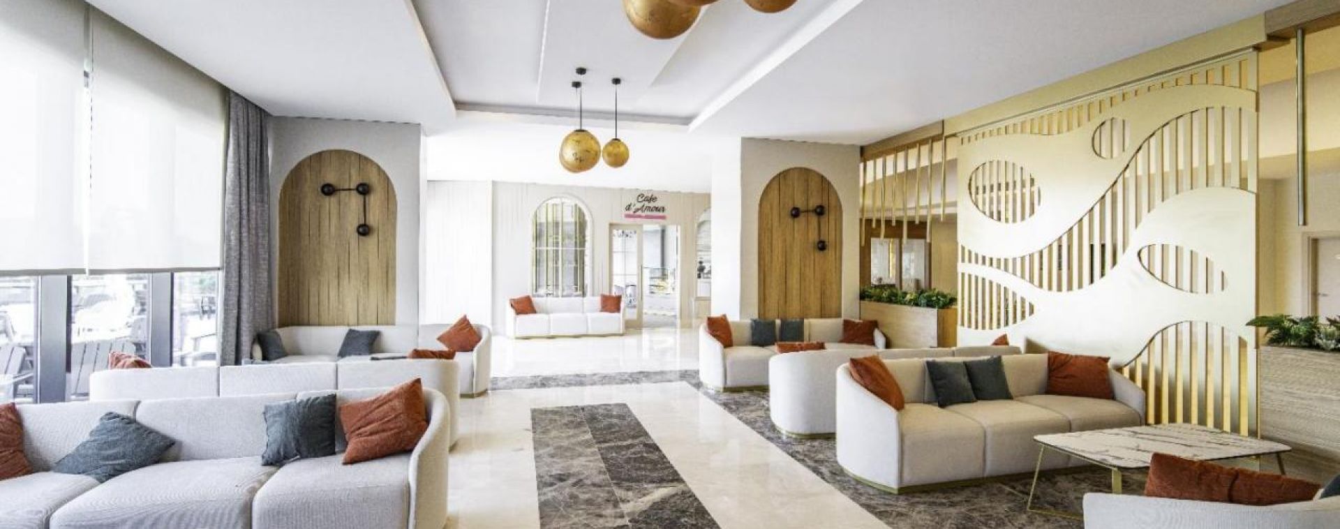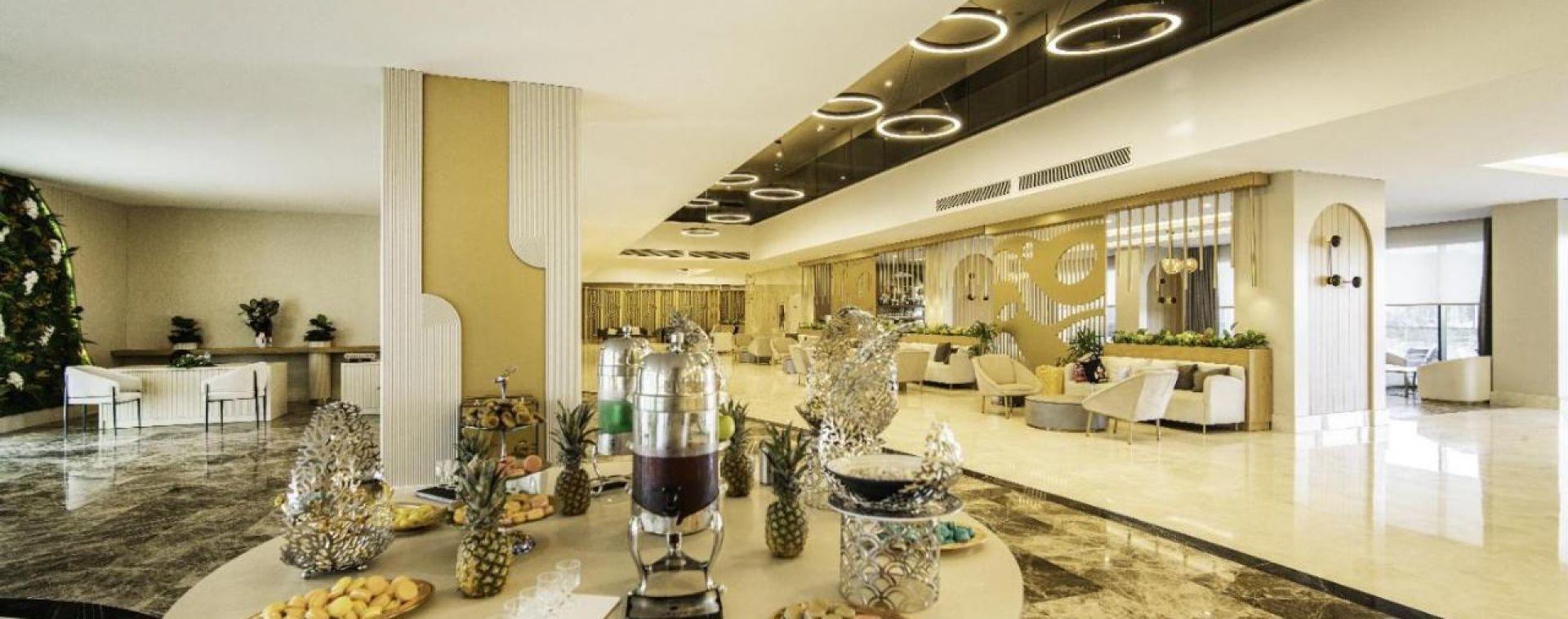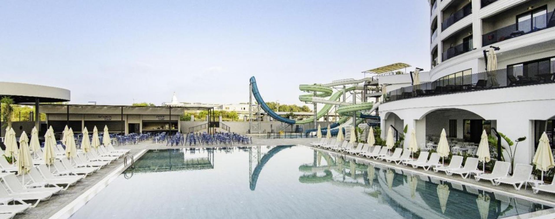 Основен ресторант, 2 а-ла карт ресторанта (рибен и турски), 5 бара, сладкарница, аквапарк, открит и закрит басейн, диско, фитнес, мини-клуб, мини-диско, анимация, СПА център, салон за красота, игрална зала, конферентна зала.