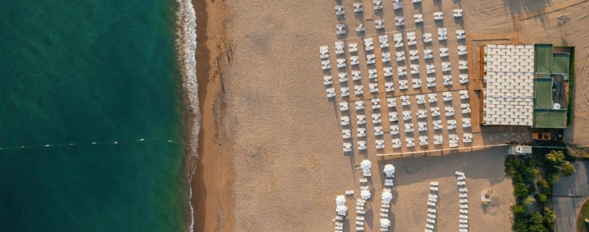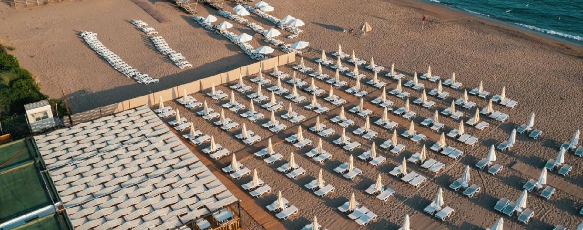 Собствен, пясъчно-чакълест на 900м от хотела с осигурен безплатен шатъл на всеки 15 минути. Чадъри, кърпи и шезлонги на плажа и басейна – безплатно.