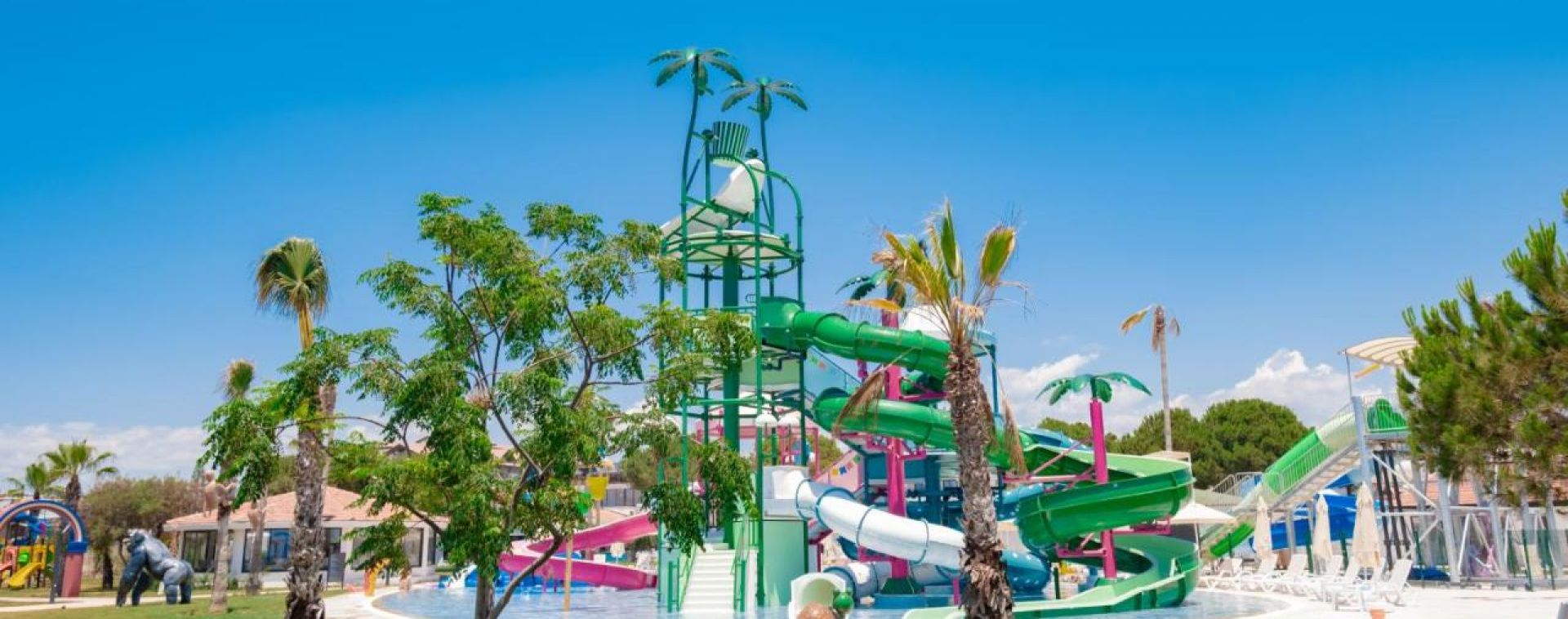 Основен ресторант, 4 а-ла-карт ресторанта (рибен, турски, италиански, мексикански - с резервация и срещу заплащане), сладкарница, 4 бара, бистро, 2 открити басейна, аквапарк, СПА център, дискотека, магазини, паркинг.