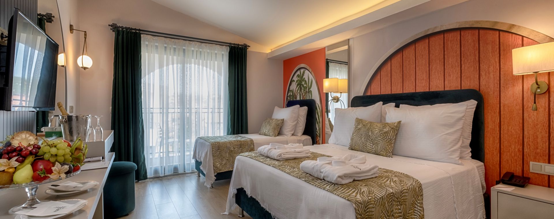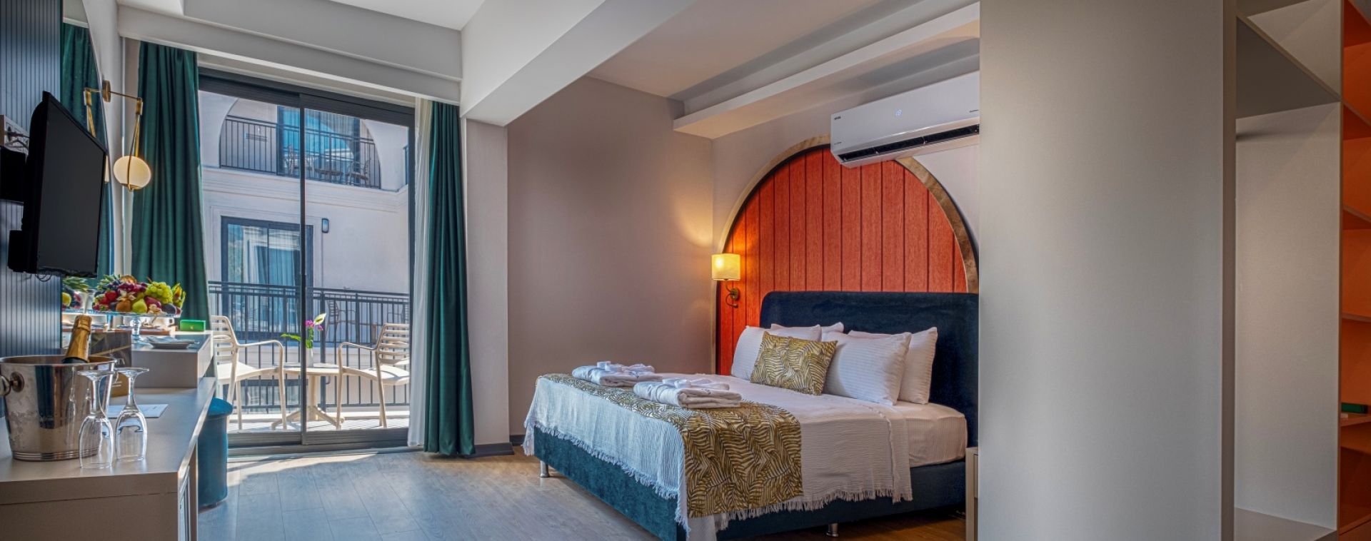 Всички стаи са оборудвани с климатик, телевизор, телефон, баня с душ, сешоар, минибар (безплатен), сейф (безплатен), балкон.