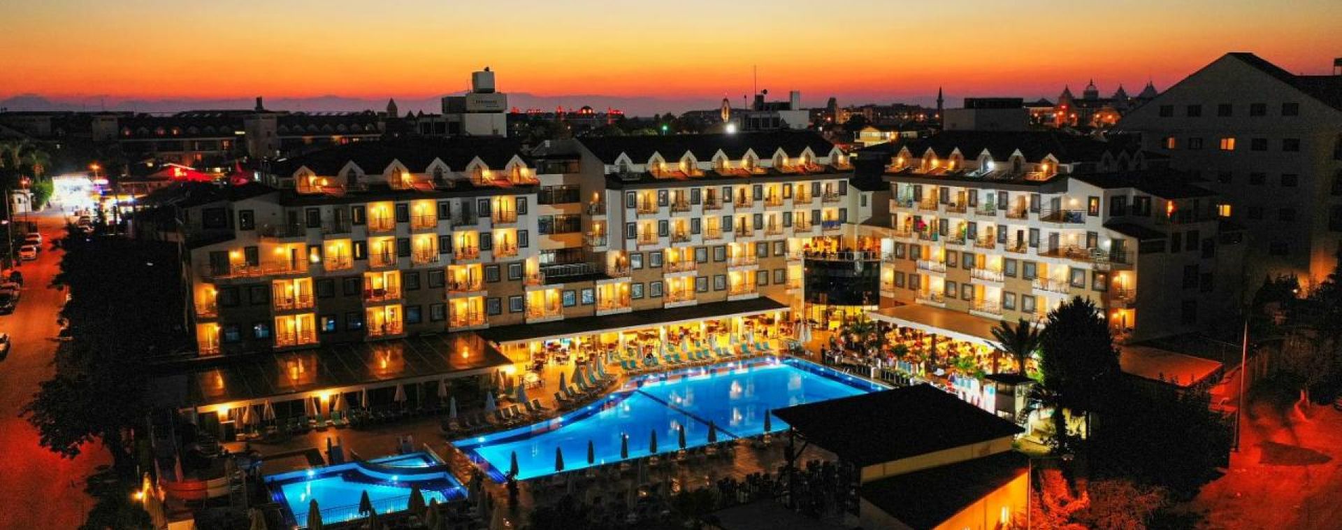 Намира се на 55 км от летище Анталия, на 65 км от центъра на Анталия, на 15 км от центъра на Сиде, на 300 м брега на морето. Построен 2004 г., на обща площ от 10 000 м2. Реновиран частично 2024/2025 г.