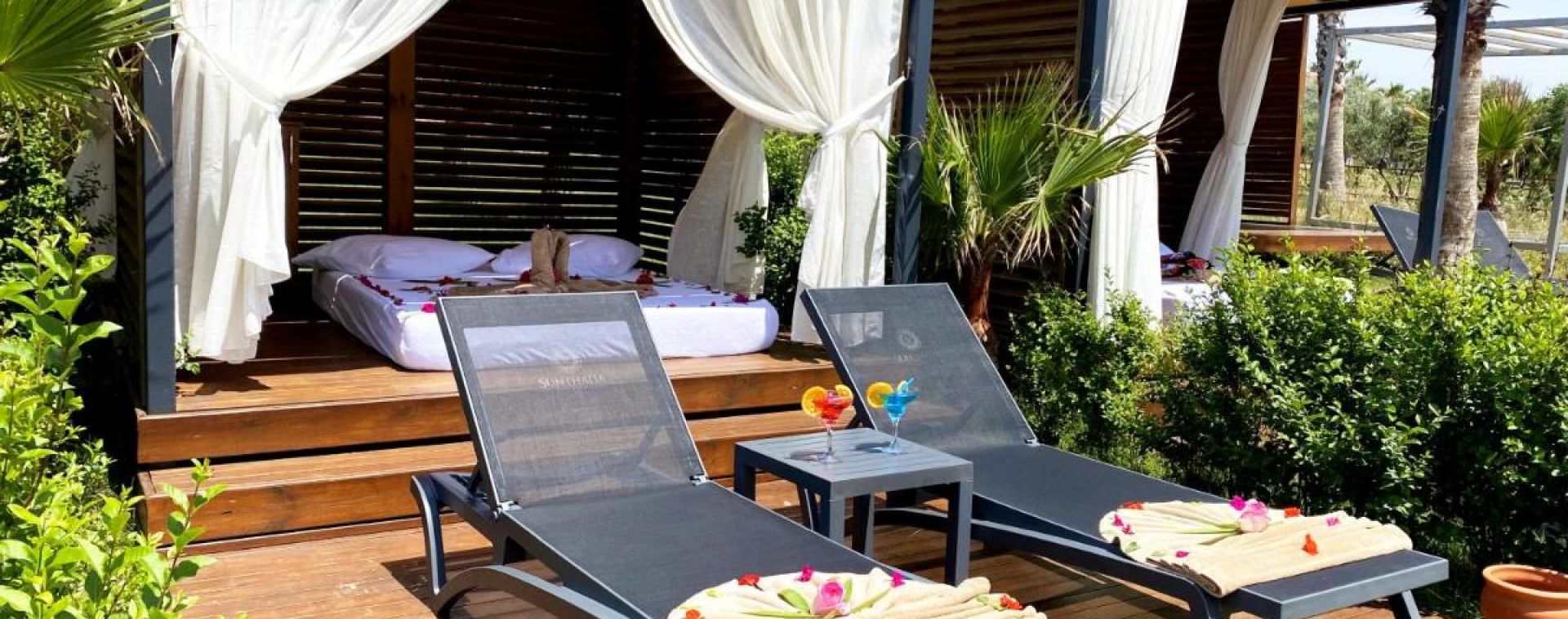За младоженци: Романтична декорация на стаята, плодове, десерт, бутилка пенливо вино, 1 закуска в стаята в предпочитан ден, 1 безплатно посещение на а-ла-карт ресторант, плажна кабана (при наличност).