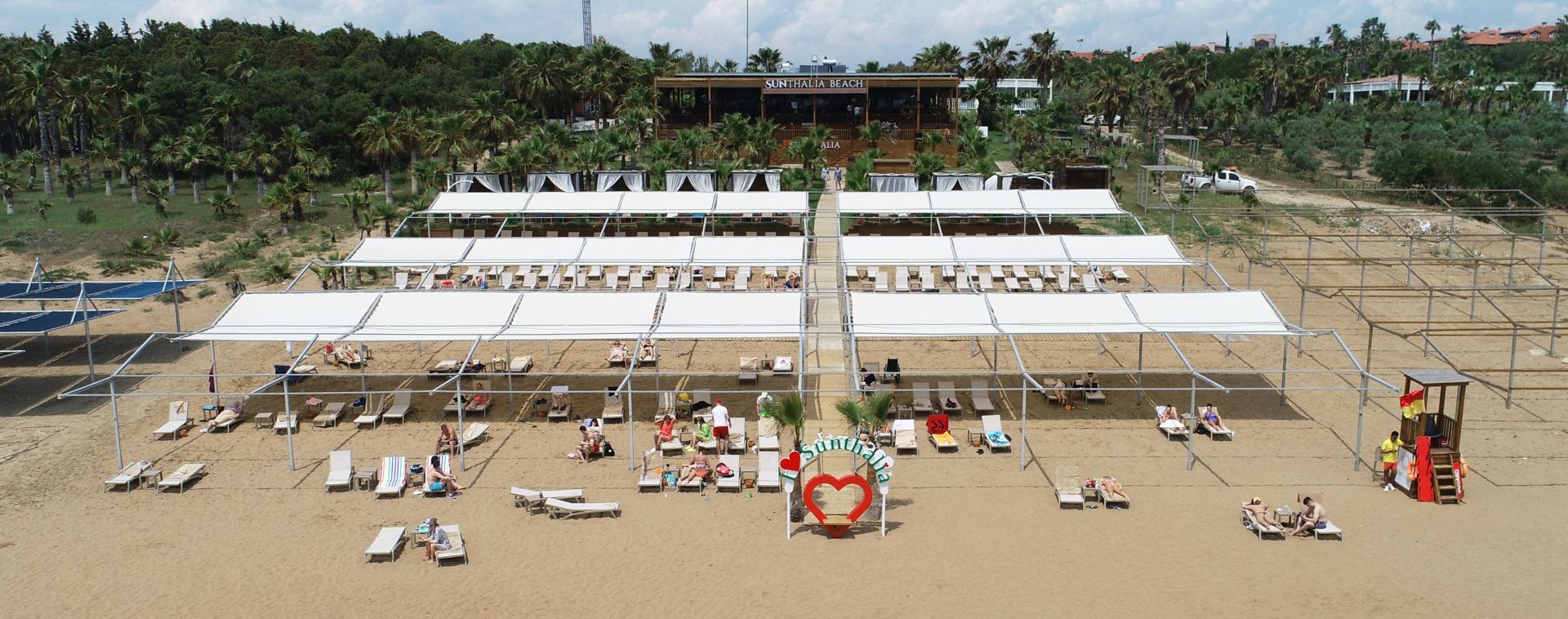 Собствен, на 500 м. от хотела, пясъчен. Безплатен шатъл до плажа (в определен часови диапазон). Чадъри и шезлонги на плажа и при басейна - безплатно. Плажни кърпи – срещу депозит.